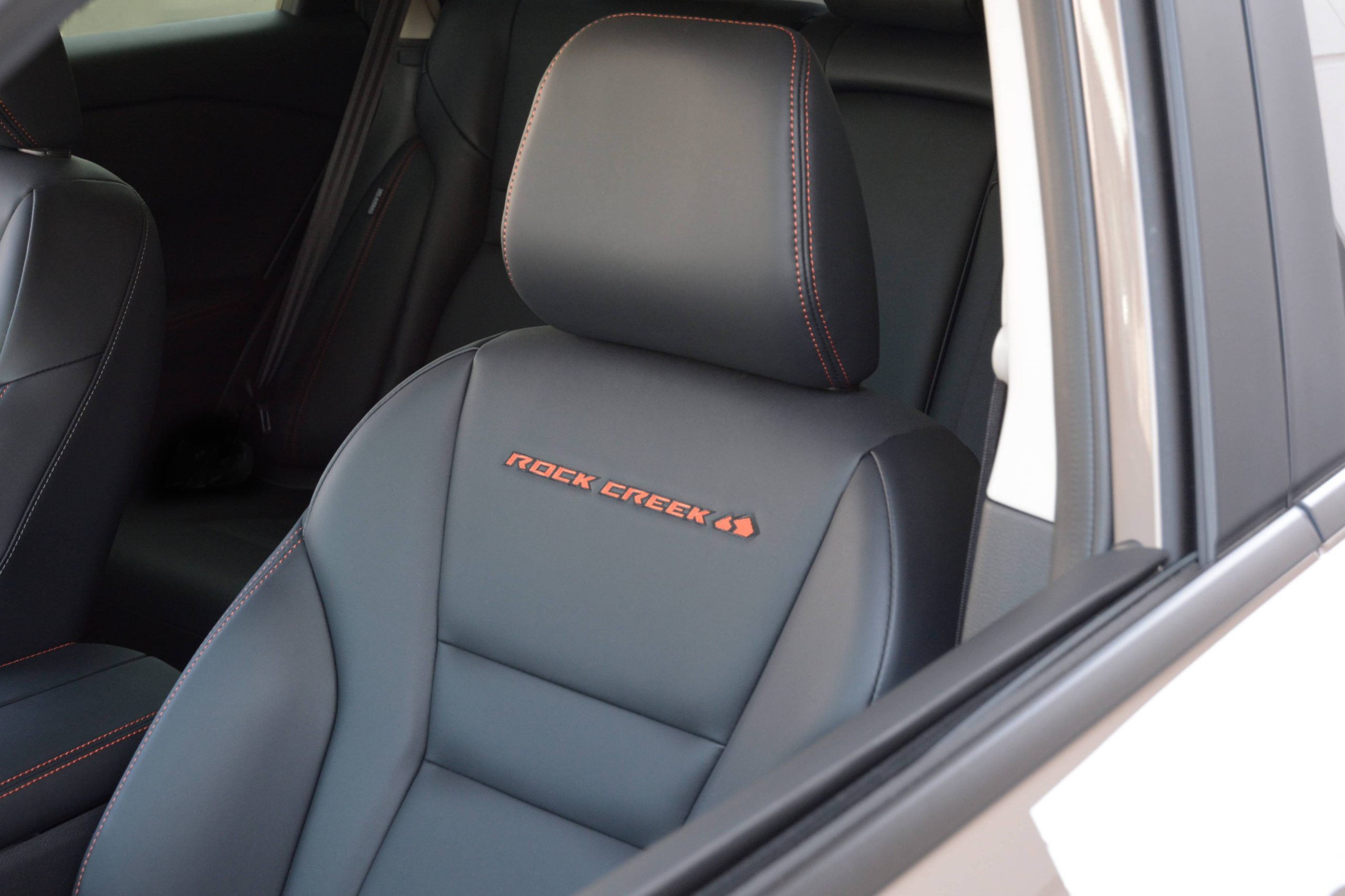 TailorFit™ leatherette seats with Rock Creek badging and orange contrast stitching